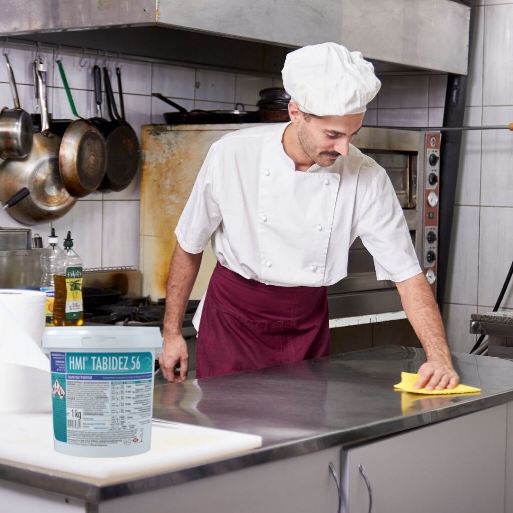 AREA OF APPLICATION: Highly effective chlorine based preparation in the form of granules and effervescent tablets for disinfection of washable surfaces in medical institutions, objects with communal purpose, kitchen surfaces and equipment and installations in manufacturing and food-trade objects.